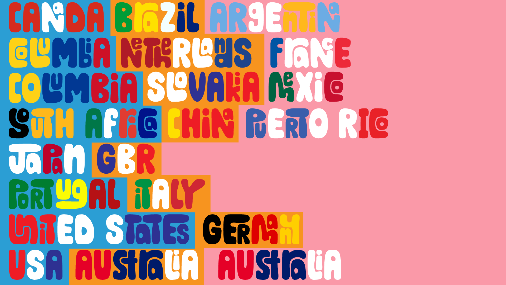 I used this as a color guide for each skaters representing country to check legibility and to make sure there were no repeating offenders. Featured font is Jackerton.
